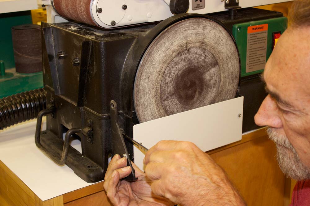 The instructions caution, and rightly so, that the table should be as close to the disc as possible… they recommend 1/16". This is important so that small work pieces or your fingers do not get caught between the disc and the worktable. Unfortunately, the closest I was able to get the worktable to the disc was almost 3/16". I began pondering whether to enlarge the holes in the table support arms or be extra careful.