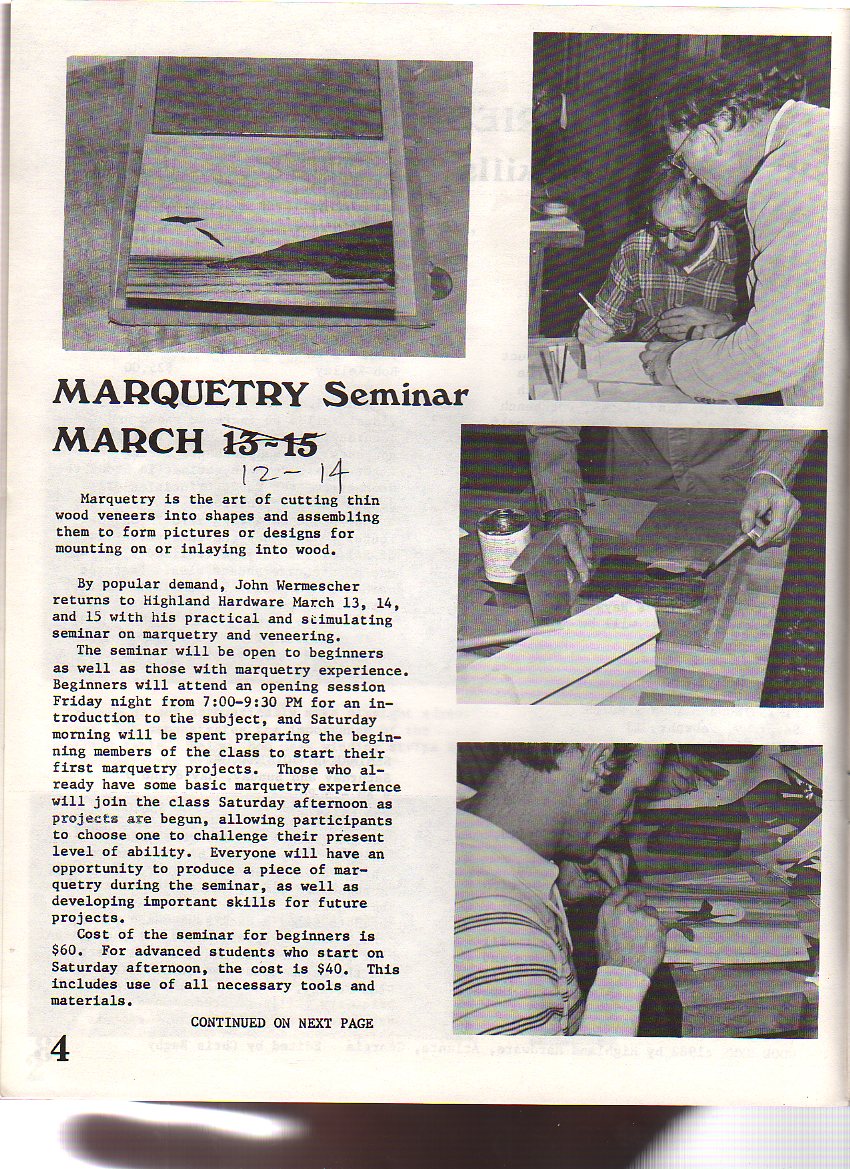 Highland Hardware evolved to become its own importer of fine tools and began to develop a wide following nationwide with a reputation as a leader in woodworking education. In 1992, the company decided to merge the newsletter into the catalog and thereafter began publishing three catalogs a year. Wood News as a separate entity was no more, until 2005 when it was resurrected on the web as Wood News Online, where it continues to be published monthly. Wood News Issue #8